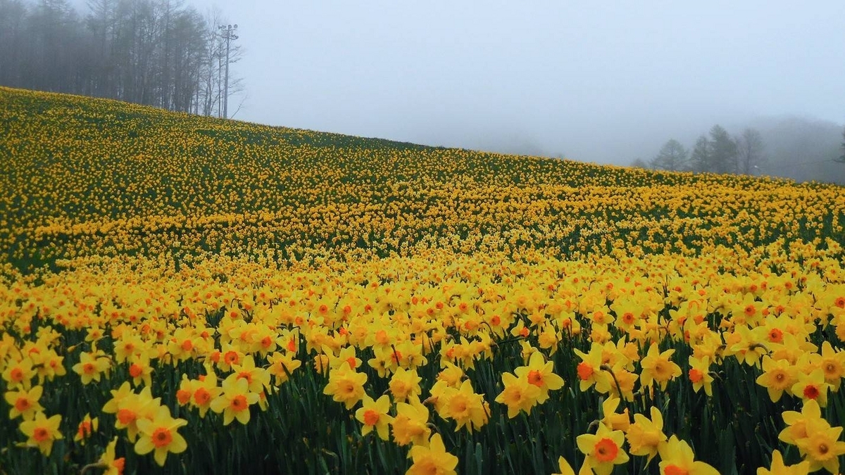 一面に広がるスイセン畑は、毎年4月中旬から5月上旬にかけて楽しめます。
