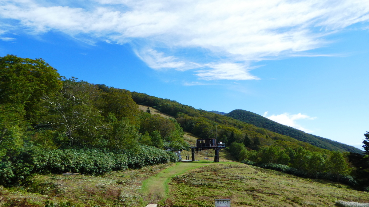 三ツ石山(みついしやま・みついしさん)は先日お伝えしたように複数の登山ルートがありますが、今回は網張温泉スキー場のリフトで標高1300メートルくらいまで上がってから、大松倉山の山頂を経由して三ツ石山頂を目指すルートを選びました。