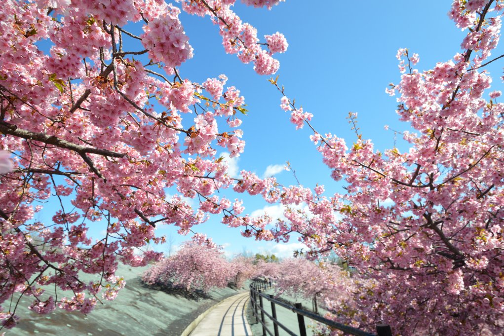 50本ある河津桜は約20年前に植樹されたもので、あまり広く知られていないためか混雑せずに桜を楽しめる穴場スポットと言えます。
